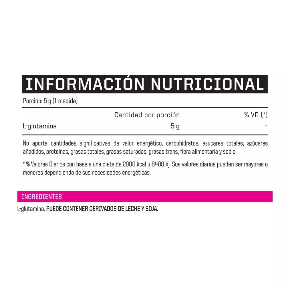 Glutamina sin aditivos, 100% pura. Para ayudar a recuperarte mucho más rápido, reparando tus tejidos dañados y previniendo la pérdida de masa muscular.